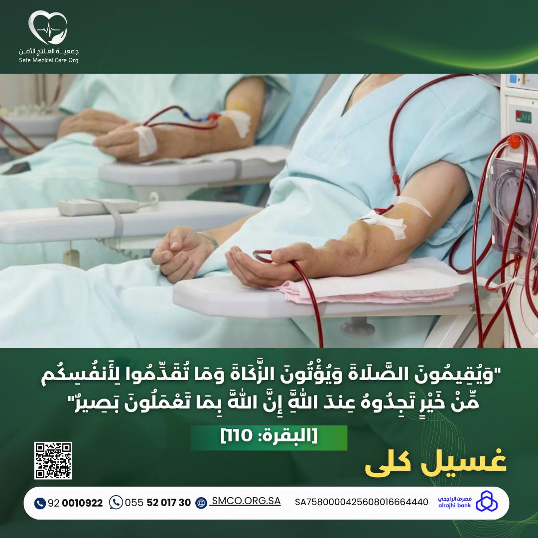 سيدة تبلغ من العمر 60 عام , من ذوي الدخل المحدود لاتستطيع تحمل تكاليف العلاج , تعاني من فشل كلوي مزمن , تحتاج الى 3 جلسات غسيل دموي بالاسبوع تكلفة الجلسة 350 ريال تبلغ التكلفة الشهرية 4200 ريال وبعد اضافة النسبة التشغيلة تبلغ القيمة الاجمالية 4620 ريال , وهي بحاجة للدعم والمساعدة .